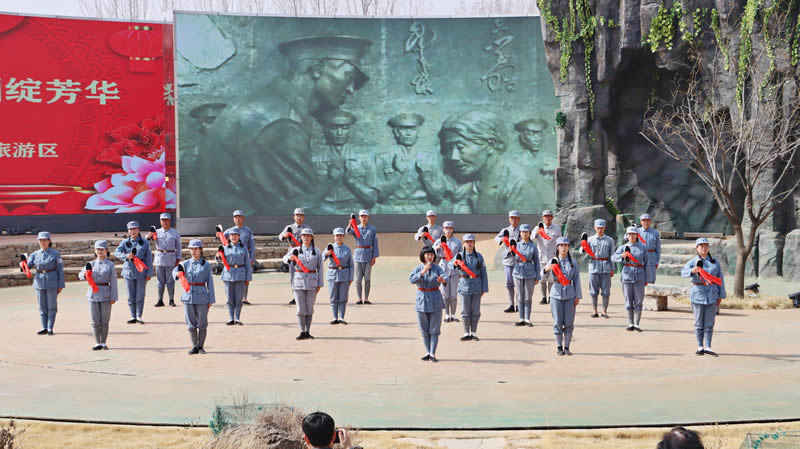 红嫂家乡旅游区为女职工们准备了主题为“追梦新时代,巾帼绽芳华”的红色沉浸式文艺节目和红色沉浸体验场所、项目。