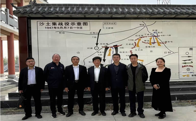 沙土集战役纪念馆始建于1985年,2018年1月被中共山东省委党史研究室命名为“山东省党史学习教育基地”。陵园内建有展馆、纪念碑、纪念塔等设施。展馆内陈列着沙土集战役中烈士使用过的武器、遗物等。园内安葬着在沙土集战役中牺牲的721名烈士。调研组一行先后瞻仰了毛泽东主席题词石碑、烈士墓、纪念碑、展厅等,详细了解了沙土集战役震撼人心、催人奋进的革命历史。